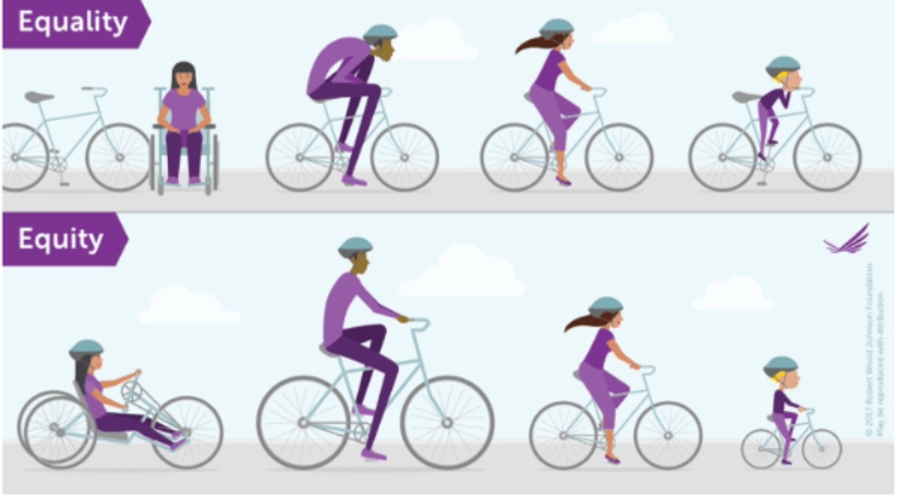 Equality (gelijkwaardigheid) is het creëren van dezelfde startpositie voor iedereen, terwijl equity (eigen vermogen) uitgaat van ongelijke startposities, waardoor mensen verschillende vormen van hulp nodig hebben om kansengelijkheid te bereiken.