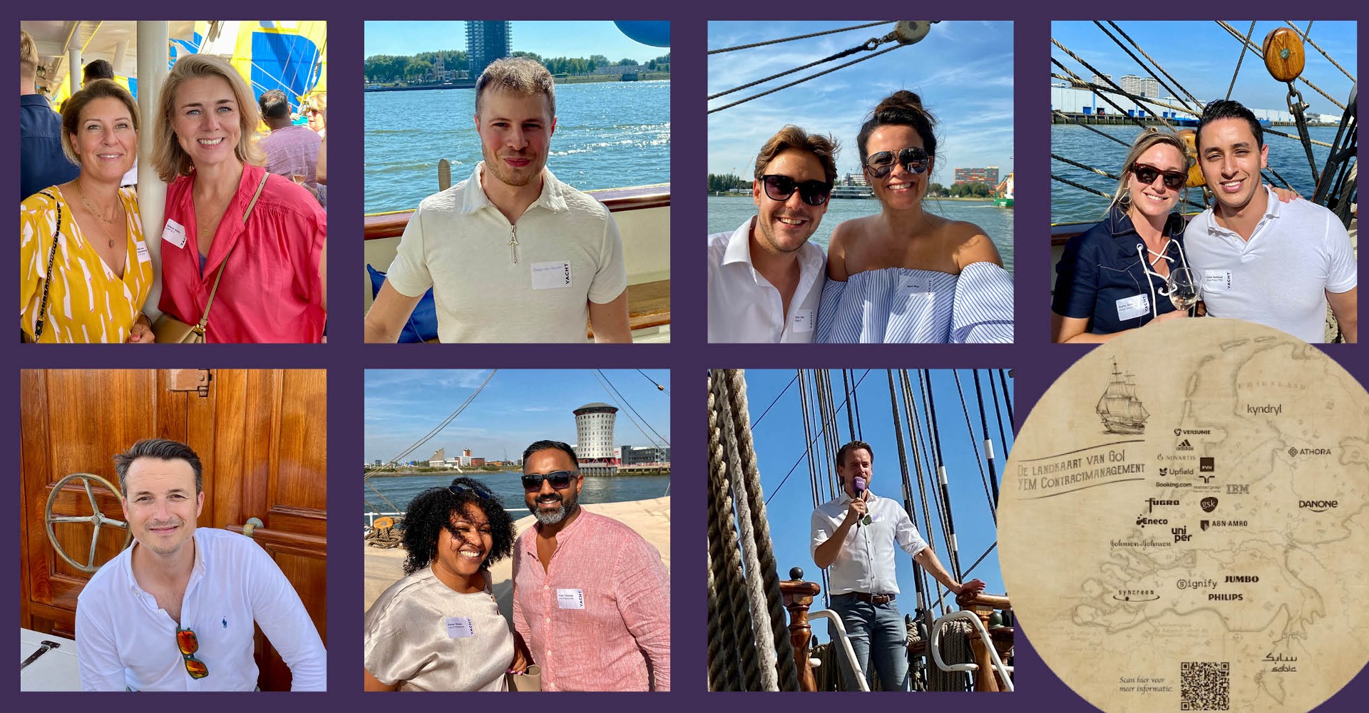 Jeroen Beijdorff, oprichter van Brainboss Associates (levert aan ABN en Rabo), vindt het fantastisch om hier te zijn. “Wij werken al zeker zeven jaar met YEM, maar zien elkaar zelden live. Daarom is dit zo mooi. Hier op het water, in de zon met een drankje erbij iedereen in het wild zien.” Jeroen prijst de samenwerking: “We leven in een tijd waarin we kunnen kiezen, maar we kiezen altijd weer voor YEM. Vanwege de onboarding, de wekelijkse facturatie, de probleemloze betaling en natuurlijk het team.” Ook hij geeft aan dat Brainboss de ambitie heeft om verder te groeien, om aan meer opdrachtgevers te gaan leveren en om nog meer als partner met elkaar op te trekken. Of hij in dat kader de QR-codes al heeft gezien? QR-codes? Zo’n buitenkansje laat geen enkele ondernemer schieten. Spoorslags verdwijnt Jeroen de menigte in, op weg naar nieuwe horizonten.